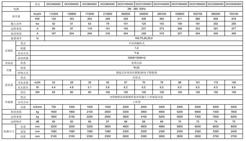 风冷螺杆式冷水机的技术参数: